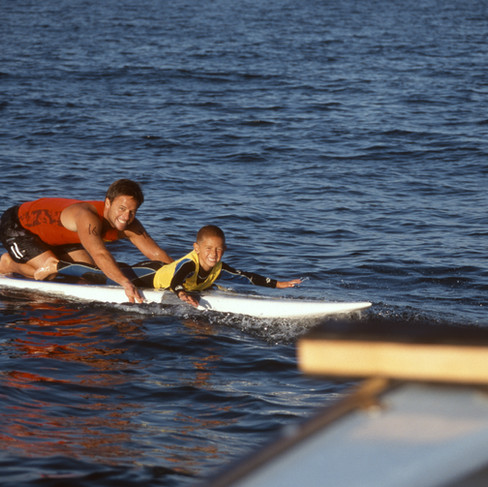 The Gair Family is a staple in the paddle community, with Tim Gair holding the Catalina Classic Unlimited record for the past 25 years. This year we got to see both of his daughters compete in the race alongside him.